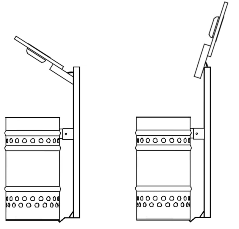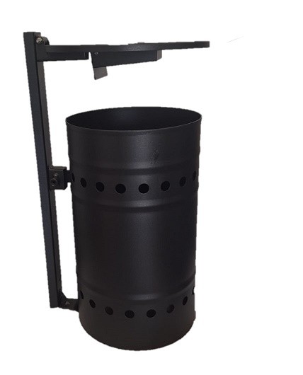 Cestino stradale sagomato a basso impatto ambientale, privo di prodotti nocivi e/o tossici, realizzato in lamiera di acciaio di spessore 1,2 mm. Il corpo del cestino, di diametro Ø 285 mm, profondità 480 mm e capacità 30 litri, è fissato alla staffa di sostegno mediante aggancio inferiore e vite superiore, garantendo stabilità e facilità di manutenzione. Il bordo superiore è antitaglio e il corpo è dotato di n. 3 nervature di rinforzo con decorazioni circolari Ø 20 mm, che conferiscono maggiore robustezza e un aspetto estetico curato. Il sistema è completo di staffa per il fissaggio a palo Ø 60 mm, tramite due staffe M8 in acciaio zincato non verniciate, progettate per assicurare una solida installazione e resistenza agli agenti atmosferici. Il coperchio, realizzato in lamiera di acciaio spessore 2 mm con sagomatura di rinforzo, è apribile per agevolare le operazioni di introduzione e rimozione delle buste interne. È inoltre completo di posacenere in acciaio inox, dotato di sistema di svuotamento automatico all’apertura.