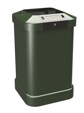 Il coperchio apribile, con bocca per l’introduzione dei rifiuti di 300x300mm, è completo di posacenere a svuotamento automatico frontale.
