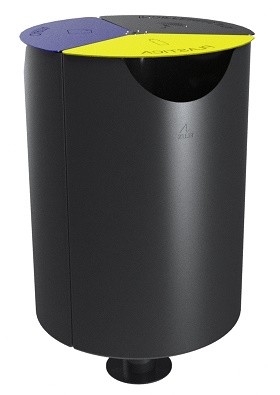 Cestino modulare con palo di supporto in tubo Ø 100mm zincato a caldo UNI EN 10240, completo di flangia per l’ancoraggio a terra tramite quattro tasselli non inclusi. Nella versione standard, il cestino puo’ montare quattro cesti da 60 litri in acciaio da 1,5mm di lamiera zincata a caldo UNI EN 10327 - 10143, completi di coperchi apribili e incernierati al corpo, a forma di spicchio.